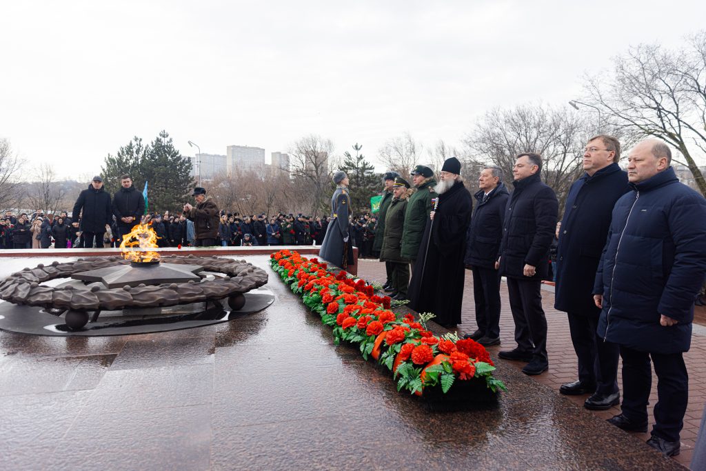 14 февраля 2026 года Глава Донской митрополии митрополит Ростовский и Новочеркасский Меркурий принял участие в церемонии возложения Гирлянды Славы и цветов к мемориальному комплексу в Кумженской роще города Ростова-на-Дону. Ровно 83 года назад, 14 февраля 1943 года, после ожесточенных боев город Ростов-на-Дону был окончательно освобожден от немецко-фашистских захватчиков.