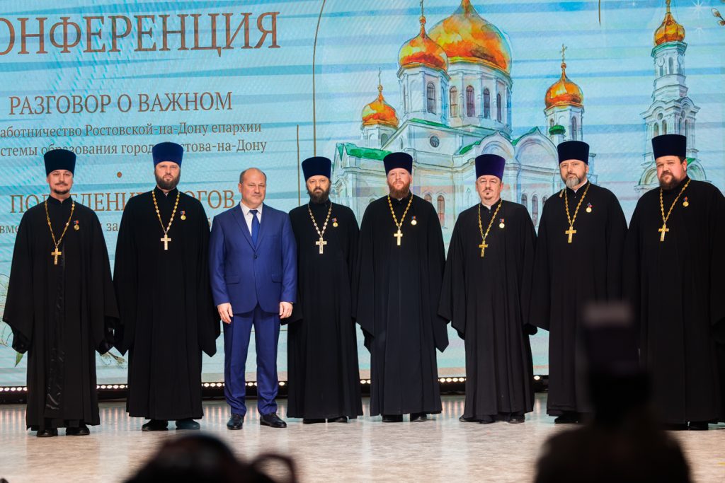 С приветственным словом к участникам конференции обратился глава города Ростова-на-Дону Александр Скрябин, после чего состоялась торжественная церемония награждения клириков Ростовской-на-Дону епархии — участников и спикеров проекта «Разговоры о важном».
