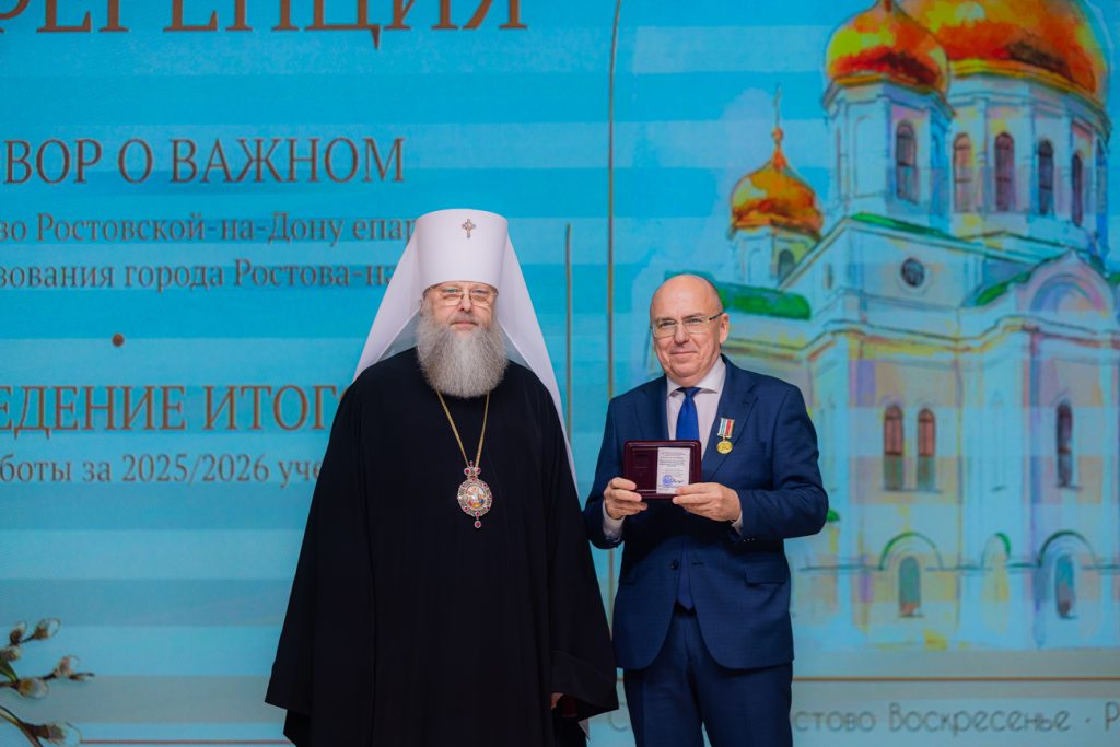 23 апреля 2026 года в муниципальном автономном общеобразовательном учреждении города Ростова-на-Дону «Школа № 115 имени Юрия Андреевича Жданова» состоялось пленарное заседание «Разговор о важном. Соработничество Ростовской-на-Дону епархии и системы образования города Ростова-на-Дону», в котором принял участие Глава Донской митрополии митрополит Ростовский и Новочеркасский Меркурий.