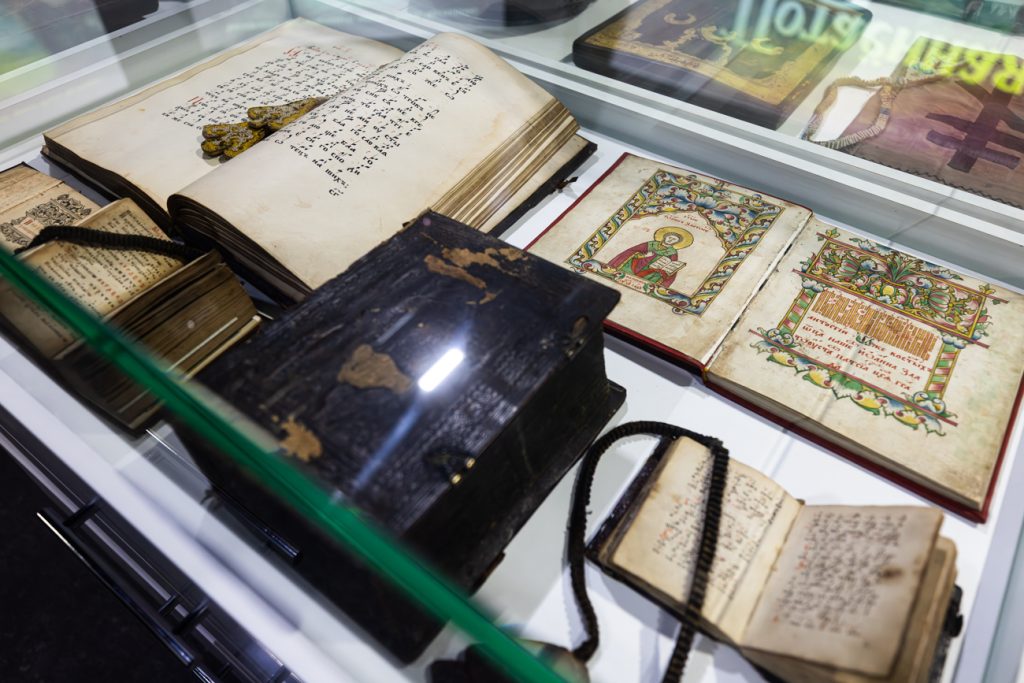 Помимо художественных произведений, в рамках выставки экспонируется личная коллекция автора — старинные церковные предметы, облачения и исторические артефакты. Также на выставке представлены книги художника, отражающие его творческий и философский подход.