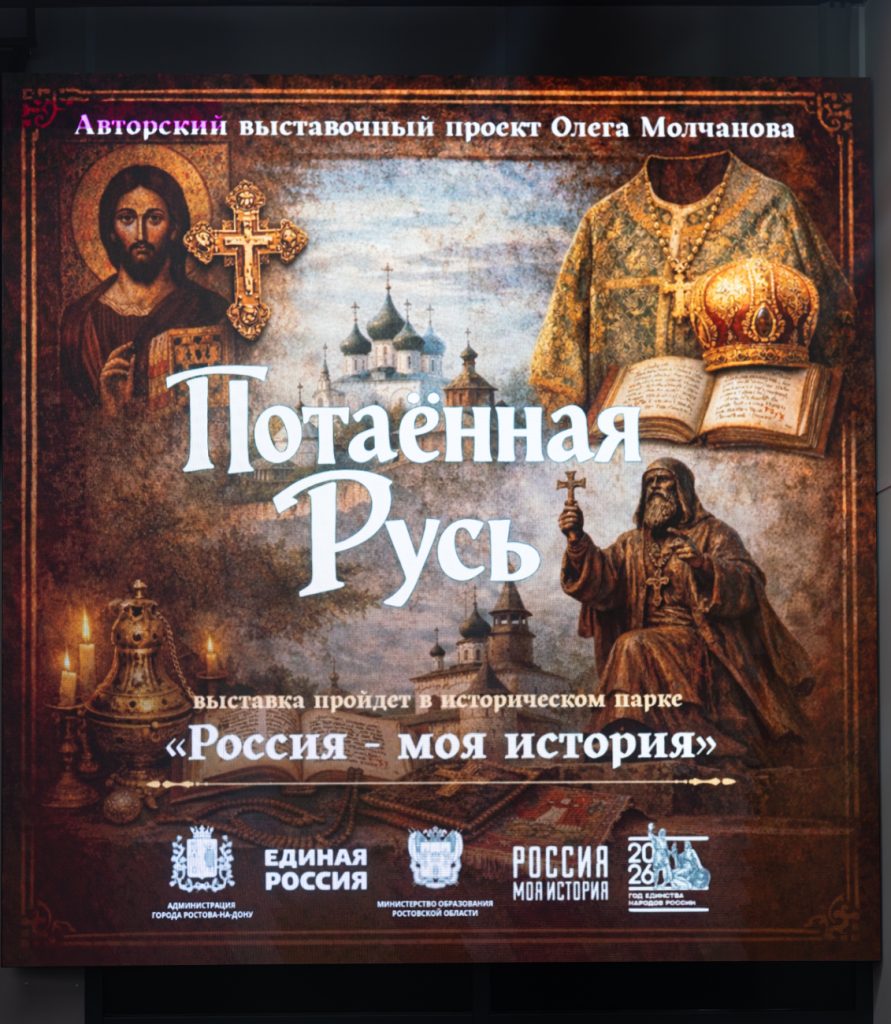В мультимедийном историческом парке «Россия — моя история» в городе Ростове-на-Дону с 3 апреля по 3 мая 2026 года пройдет выставка «Потаённая Русь» заслуженного художника России Олега Ивановича Молчанова.