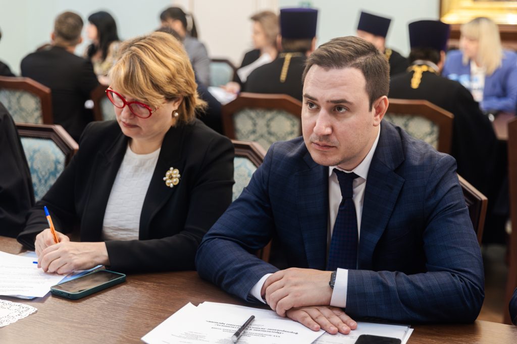Сопредседателем заседания выступил председатель Законодательного Собрания Ростовской области Александр Ищенко. Ответственным секретарем Димитриевских чтений в Донской митрополии стала руководитель Отдела религиозного образования и катехизации Ростовской-на-Дону епархии Ольга Шевченко.