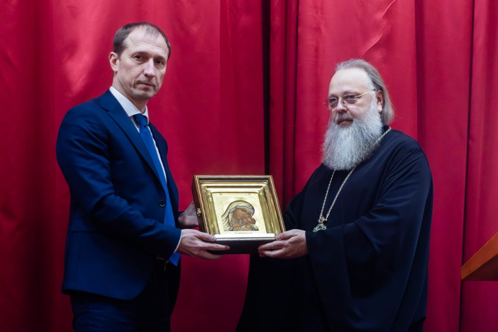 На молитвенную память Глава Донской митрополии преподнес в дар Сергею Шамшуре икону Божией Матери «Корсунская».
