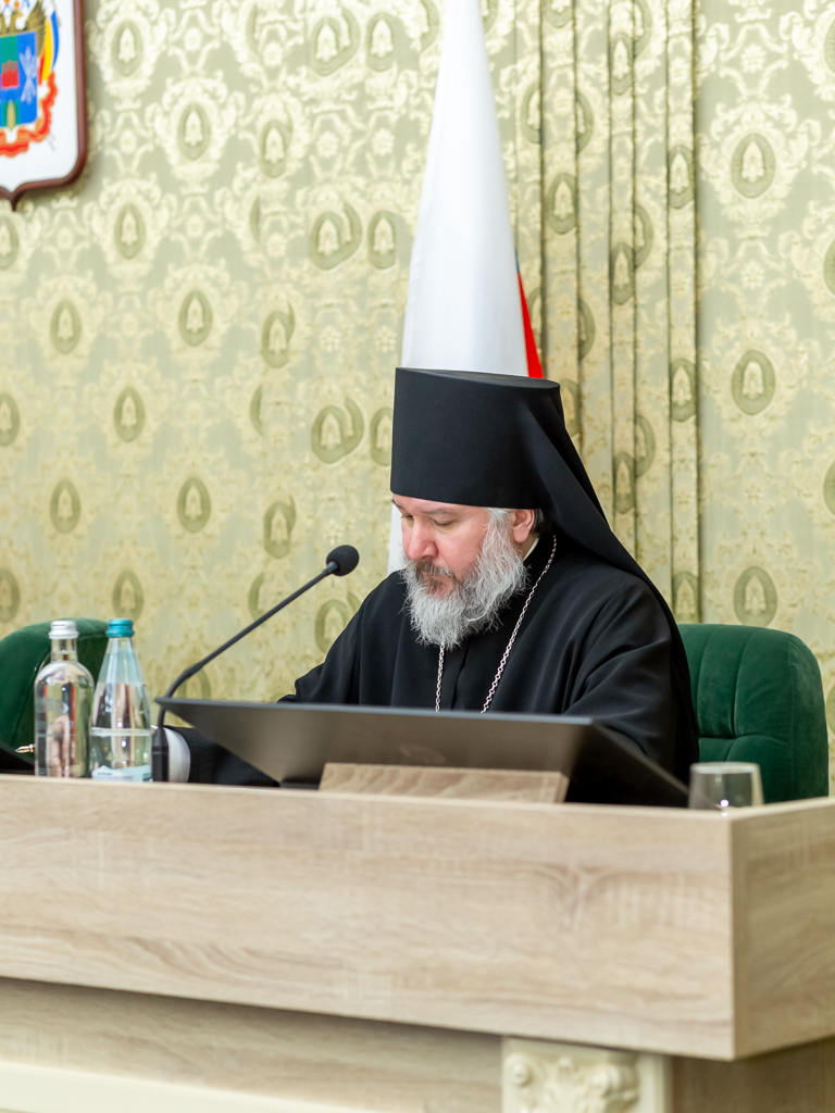 В своем выступлении митрополит Меркурий затронул вопросы богослужебной жизни и пастырского служения, религиозного образования и нравственного воспитания молодежи, взаимодействия с педагогами и вузами, социальной работы и благотворительных инициатив, патриотического воспитания. Также владыка митрополит подвел итоги деятельности Донской митрополии и ответил на вопросы духовенства.