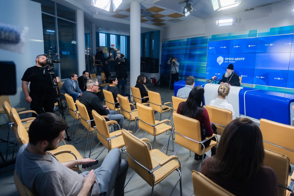 16 апреля 2026 года Глава Донской митрополии митрополит Ростовский и Новочеркасский Меркурий принял участие в пресс-конференции на площадке «Дон-Медиа».