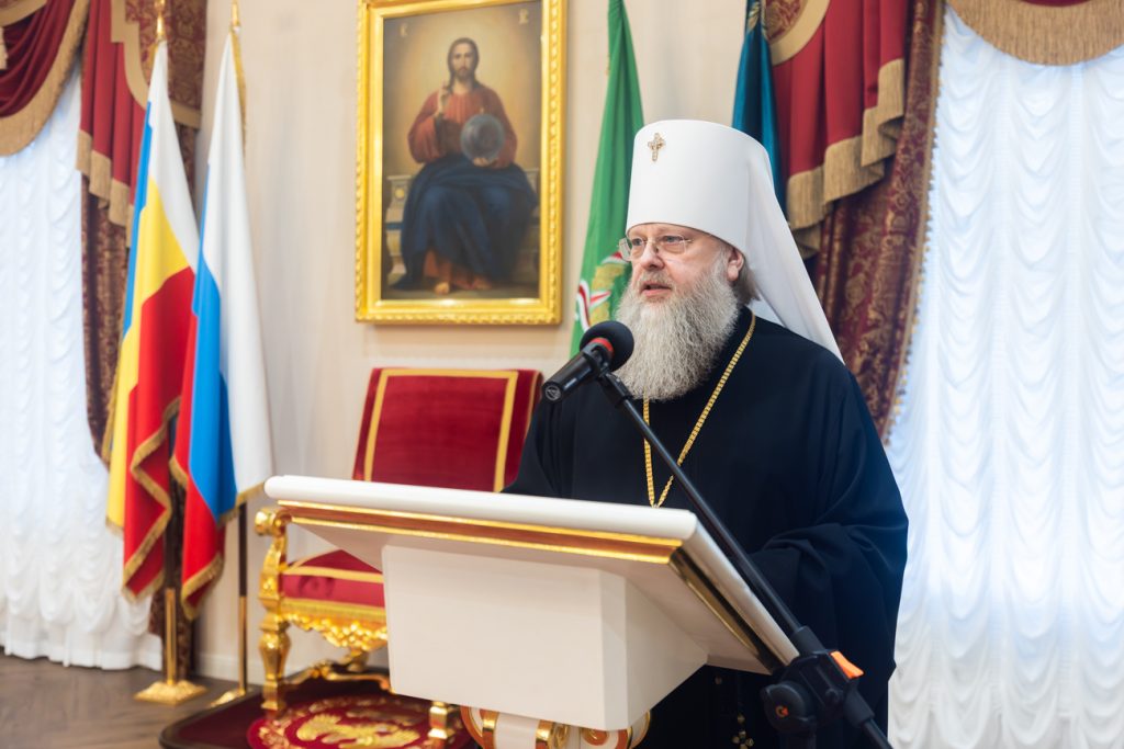 Перед началом награждения к присутствующим обратился Глава Донской митрополии. В своем слове владыка митрополит, в частности, отметил: «Сегодня здесь собрались люди разных сфер деятельности: священнослужители, монашествующие, миряне и семейные люди, педагоги, врачи, строители.