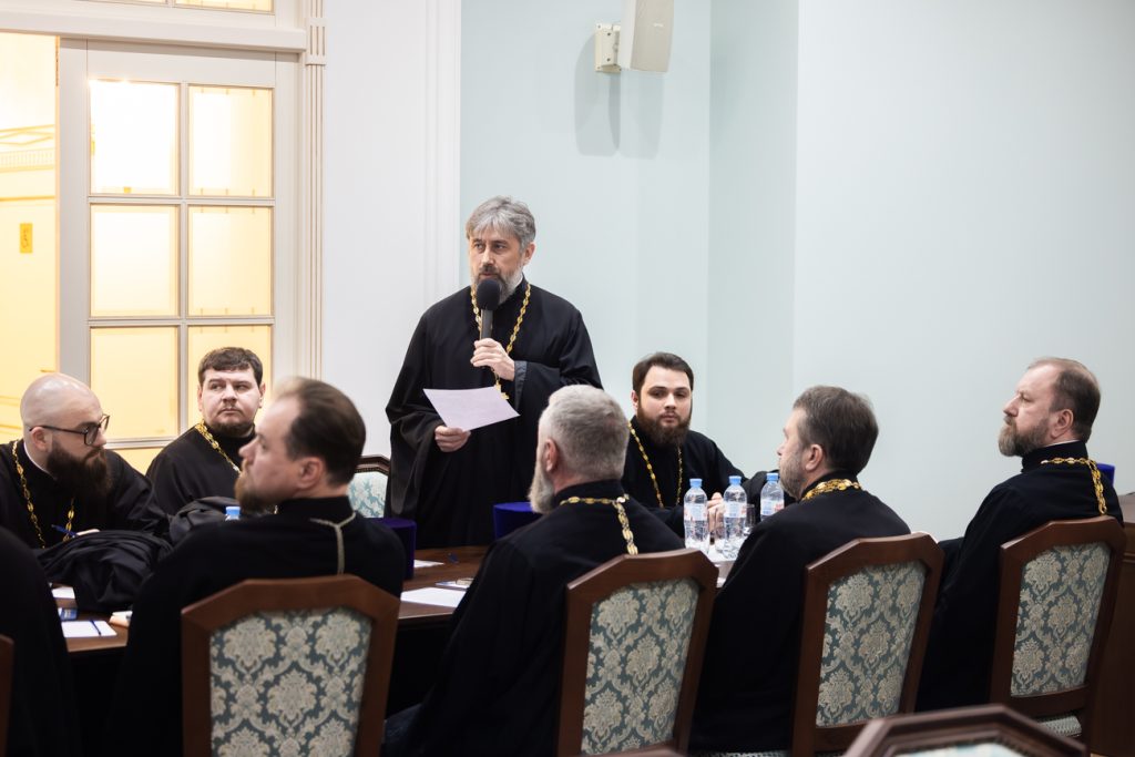 В работе совещания приняли участие секретарь Епархиального управления иерей Димитрий Болотаев, секретарь митрополита Ростовского и Новочеркасского по городу Ростову-на-Дону протоиерей Иоанн Осяк, благочинный приходов Новочеркасского округа протоиерей Олег Добринский, епархиальный архитектор Роман Фоменко, а также благочинные церковных округов епархии.