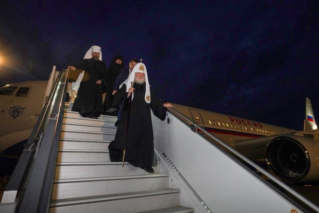 В состав делегации, сопровождающей в поездке Предстоятеля Русской Православной Церкви, входят: управляющий делами Московский Патриархии митрополит Воскресенский Григорий; личный секретарь Святейшего Патриарха Кирилла епископ Раменский Алексий; руководитель Патриаршей службы протокола протоиерей Андрей Бондаренко; заместитель руководителя Пресс-службы Патриарха Московского и всея Руси Н.И. Державин.