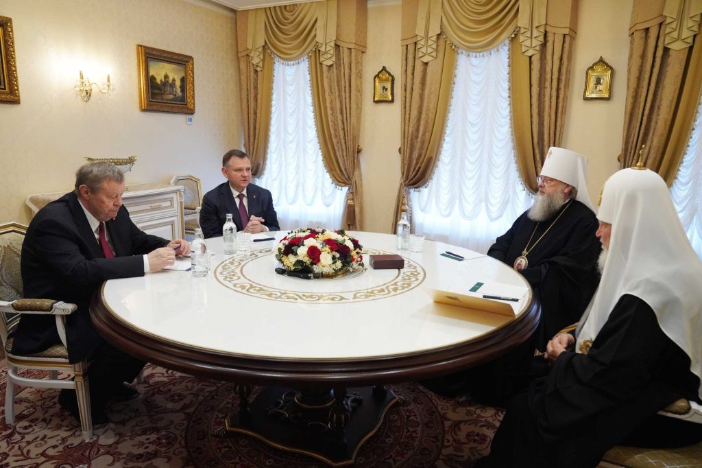Ю.Б. Слюсарь также поблагодарил Святейшего Патриарха за помощь и внимание к воинам, к тем, кто находится в госпиталях, к членам их семей. «Мы с митрополией ведем большую работу, многое делается, ведь самое главное — это духовная поддержка. И мы с владыкой стараемся помочь по максимуму в этом вопросе», — сообщил губернатор.