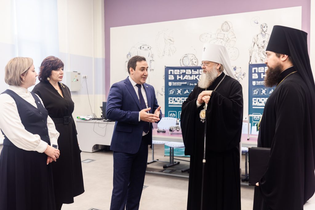 Перед началом Форума для митрополита Меркурия и епископа Таганрогского Артемия была организована ознакомительная экскурсия по кабинетам образовательной организации.