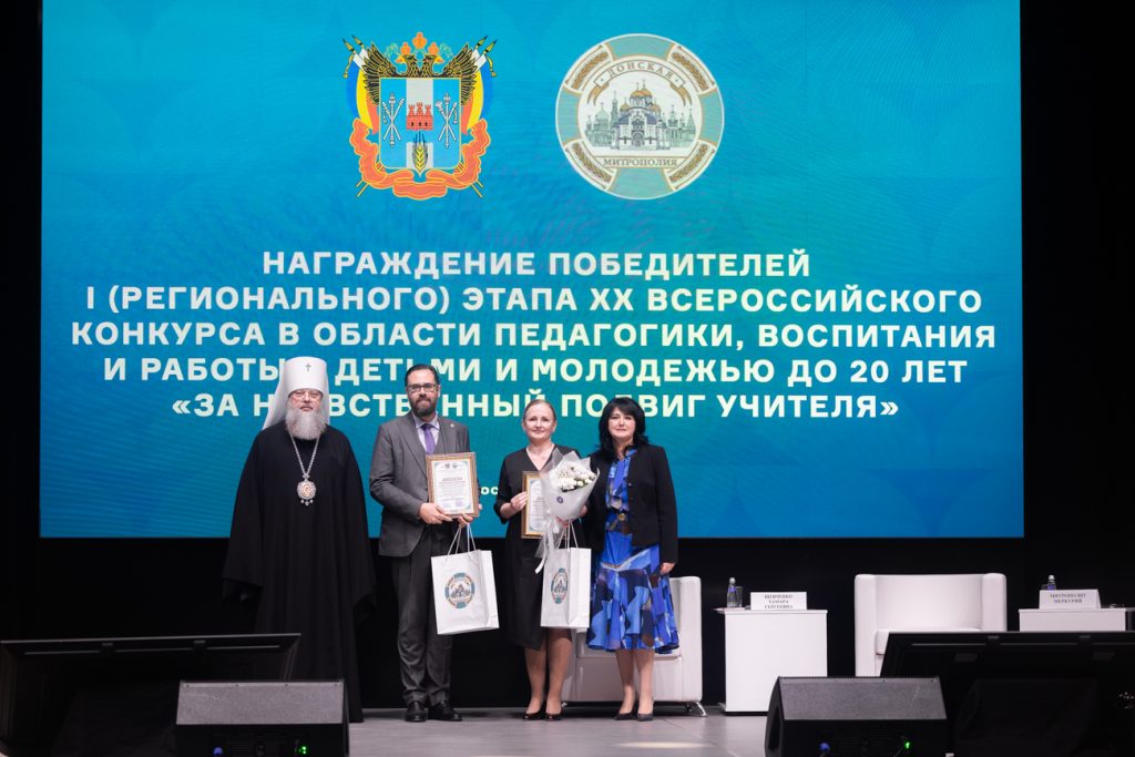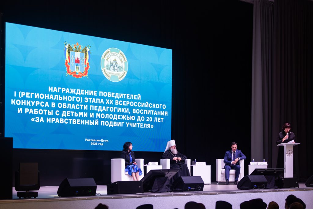 В рамках конференции состоялась торжественная церемония награждения победителей регионального этапа Всероссийского конкурса «За нравственный подвиг учителя». В 2025 году на конкурс была представлена 201 работа из 195 образовательных организаций Ростовской области, из которых 99 работ поступило от педагогов Ростовской-на-Дону епархии.