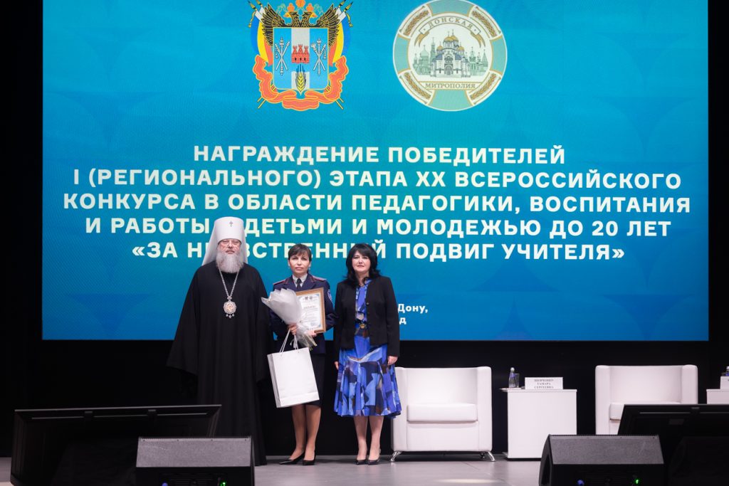 Награды победителям вручили митрополит Ростовский и Новочеркасский Меркурий и министр общего и профессионального образования Ростовской области Тамара Шевченко.