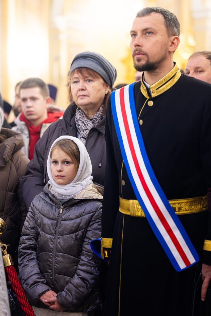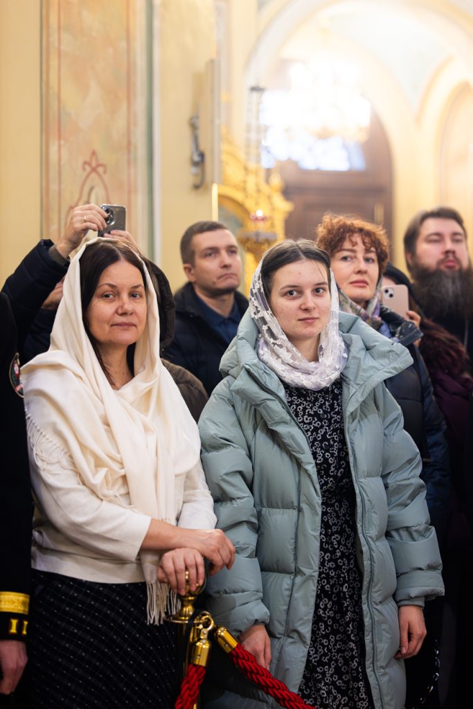 За богослужением молились настоятельница Свято-Иверского женского монастыря города Ростова-на-Дону игумения Рахиль (Ковалева) с сестрами обители, студенты Донской духовной семинарии, представители Общества Хоругвеносцев, духовенство епархии, прихожане и гости собора.
