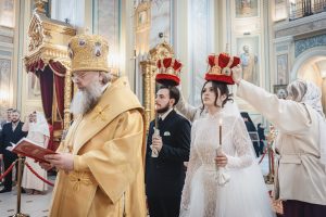 «Отныне уже нет двух отдельных жизней, но есть единая семейная жизнь, основанная не только на чувствах и взаимной симпатии, но прежде всего на глубокой, жертвенной любви, когда один ради другого готов пожертвовать всем: «И будут два одною плотью; так что они уже не двое, но одна плоть» (Мф. 19:6). Супружеская жизнь — это подвиг самоотвержения. И неслучайно во время Таинства Венчания Церковь воспевает: «Святии мученицы, добре страдавшии и венчавшиися, молитеся ко Господу, спастися душам нашим». Это мученичество о Христе — радостное и светлое, исполненное силы Божией, ибо Сам Господь укрепляет вас в этом служении».