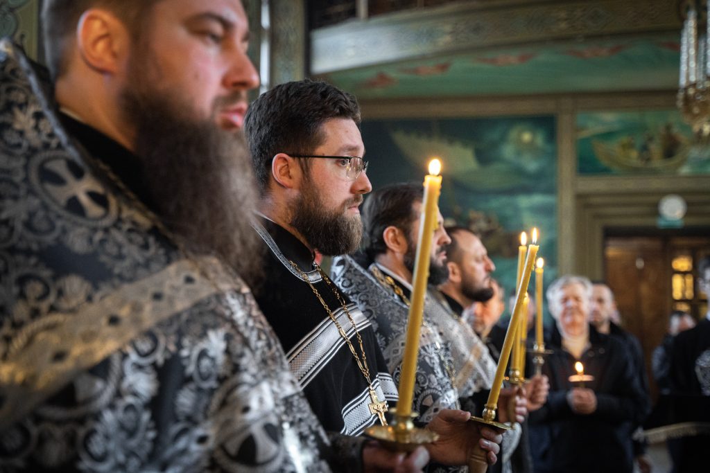 Его Преосвященству сослужили настоятель Преполовенского храма, проректор по воспитательной работе Донской духовной семинарии иерей Андрей Миронов, заведующий отделением магистратуры Донской духовной семинарии протоиерей Григорий Гриднев, проректор по учебной работе Донской духовной семинарии иерей Олег Малышев и клирики храма.