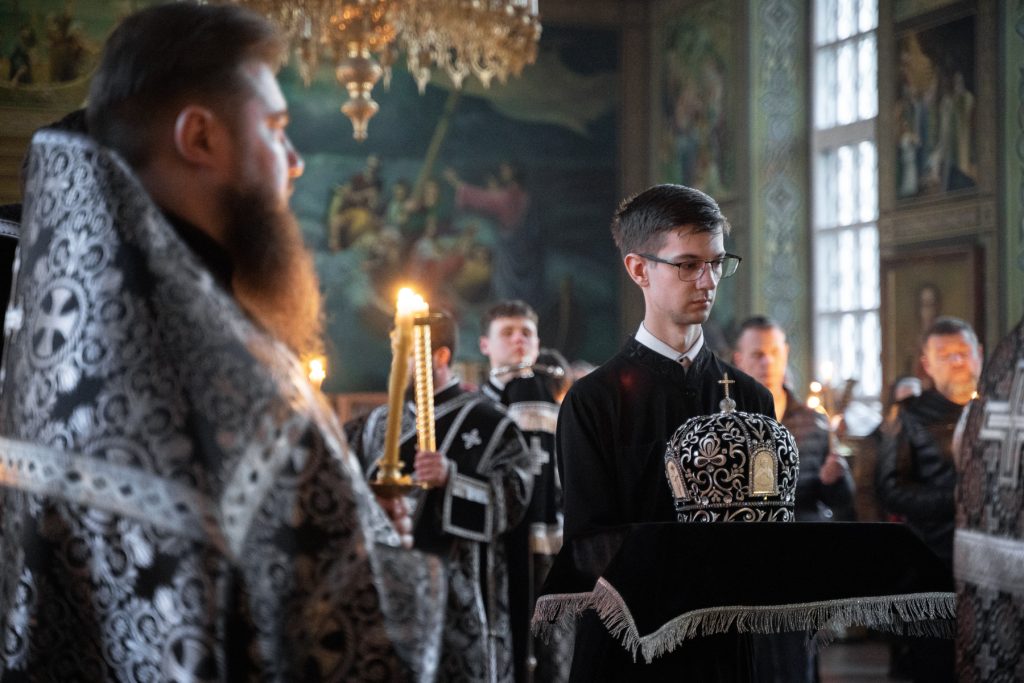 Песнопения богослужения исполнил мужской хор духовной школы под управлением иеромонаха Аверкия (Шапошникова).