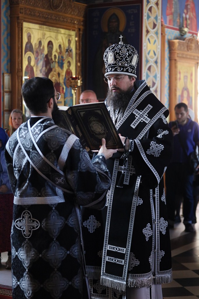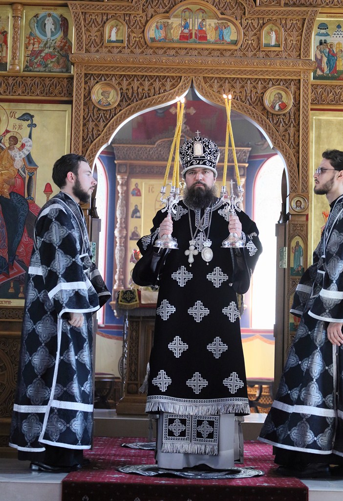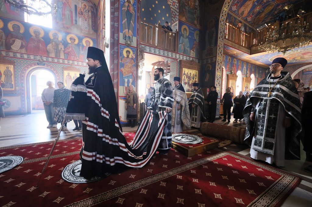 Его Преосвященству сослужили благочинный Северного округа, настоятель храма иерей Игорь Миляев, а также клирики храма.