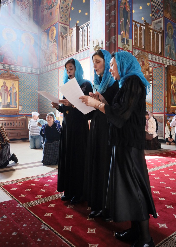 Песнопения богослужения исполнили хор Казанского храма под управлением Людмилы Савенковой и детский приходской хор под руководством Ольги Столяровой. Проповедь перед Святым Причастием произнес клирик храма иерей Сергий Грибов.