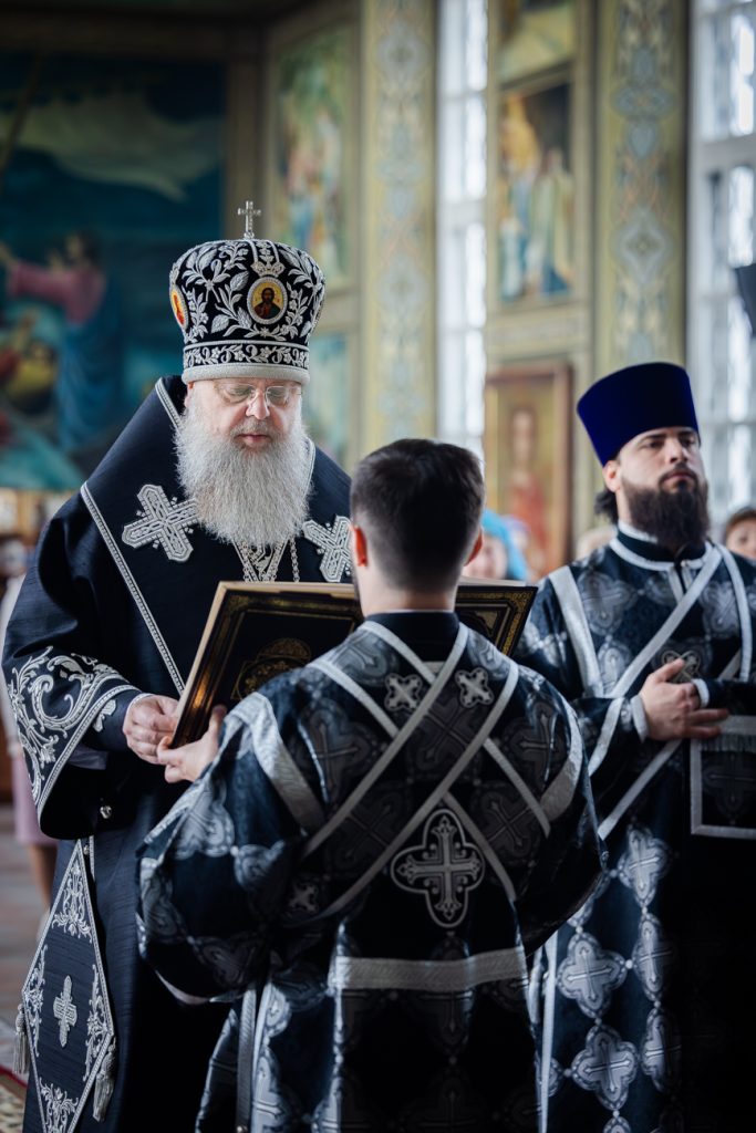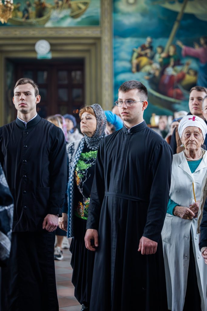 Его Высокопреосвященству сослужили ректор Донской духовной семинарии протоиерей Тимофей Фетисов, настоятель Преполовенского храма, проректор по воспитательной работе иерей Андрей Миронов, секретарь Епархиального управления Ростовской-на-Дону епархии иерей Димитрий Болотаев и клирики храма.