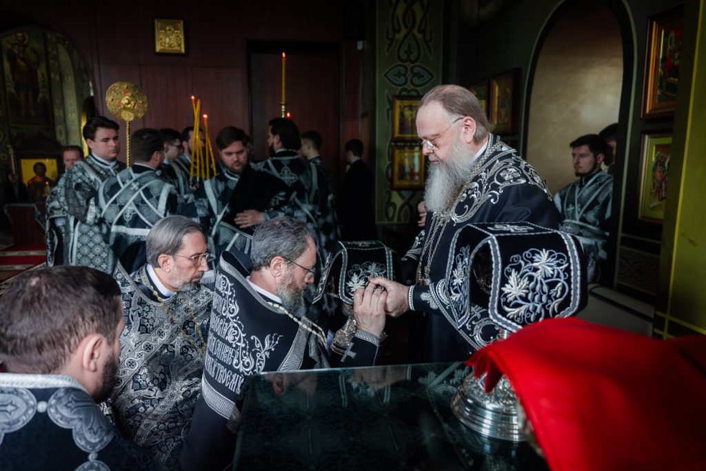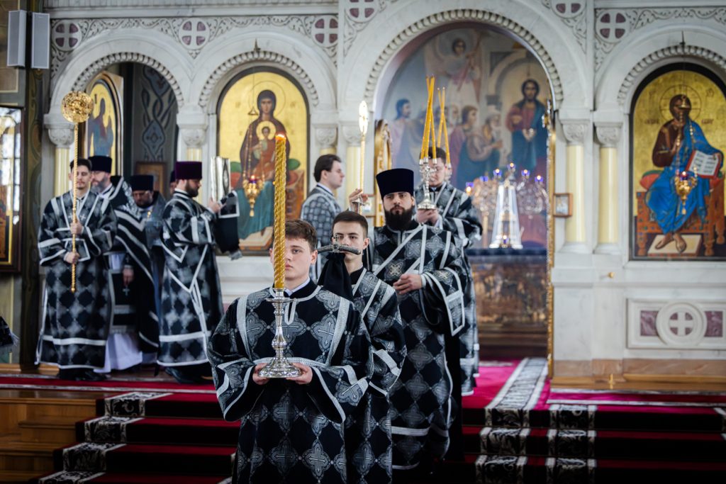 8 апреля 2026 года, в Великую Среду Страстной седмицы, Глава Донской митрополии митрополит Ростовский и Новочеркасский Меркурий совершил Литургию Преждеосвященных Даров в храме Преполовения Пятидесятницы при Донской духовной семинарии города Ростова-на-Дону.