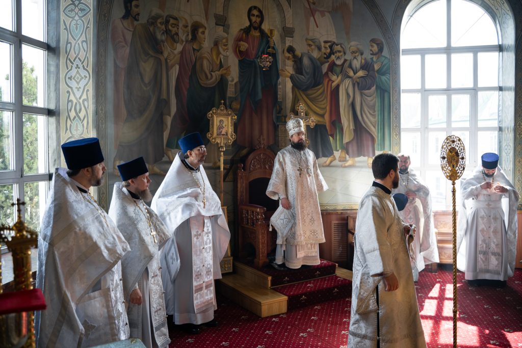 11 апреля 2026 года, в Великую Субботу, викарий Ростовской епархии епископ Таганрогский Артемий совершил вечерню и Божественную литургию святителя Василия Великого в храме Преполовения Пятидесятницы при Донской духовной семинарии города Ростова-на-Дону.