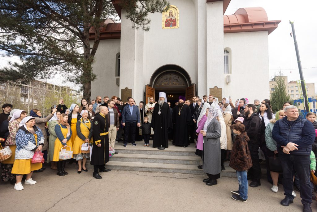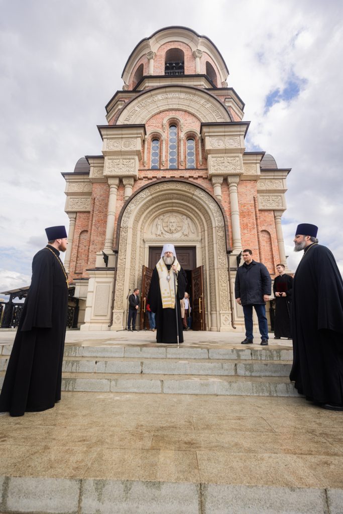 Затем архипастырь прибыл в храм святого великомученика Георгия Победоносца — Главный православный воинский храм Южного военного округа.