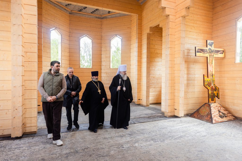 Далее митрополит Меркурий посетил строящийся храм в честь Донской иконы Божией Матери, где ознакомился с ходом строительных работ.