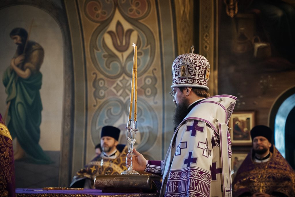 Его Преосвященству сослужили настоятель Преполовенского храма, проректор по воспитательной работе Донской духовной семинарии иерей Андрей Миронов, заведующий отделением магистратуры Донской духовной семинарии протоиерей Григорий Гриднев и клирики храма.