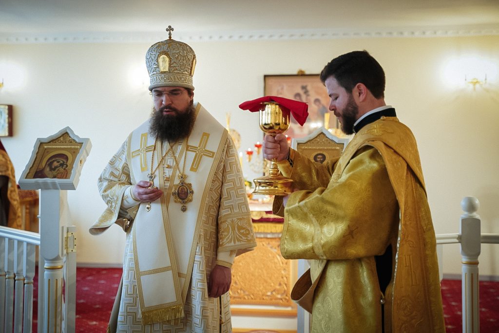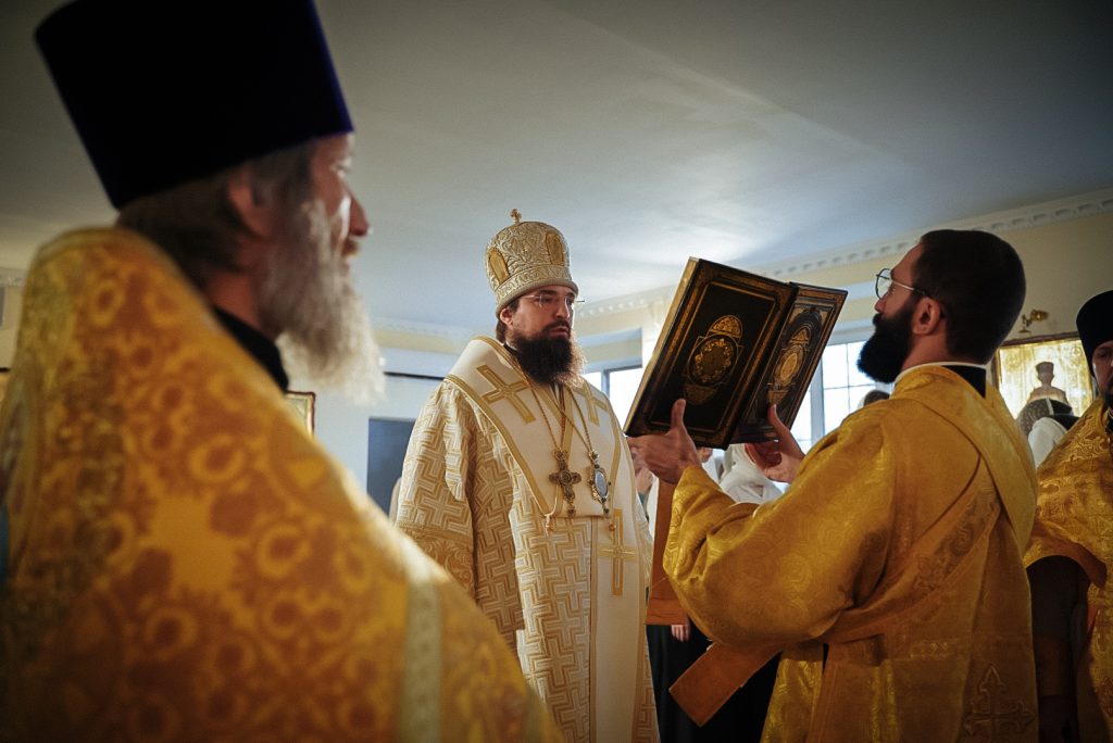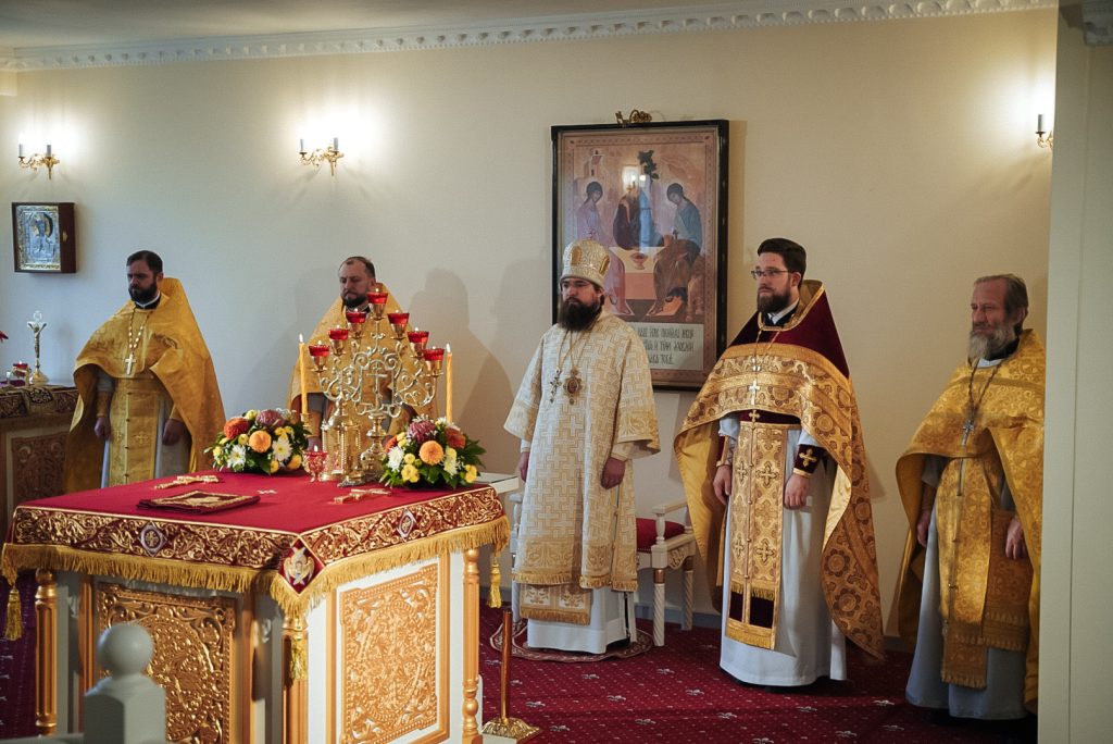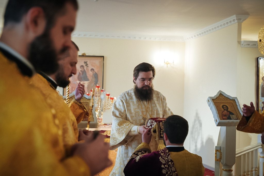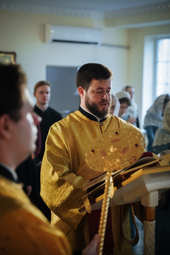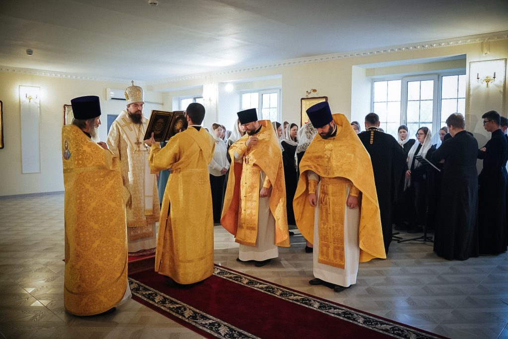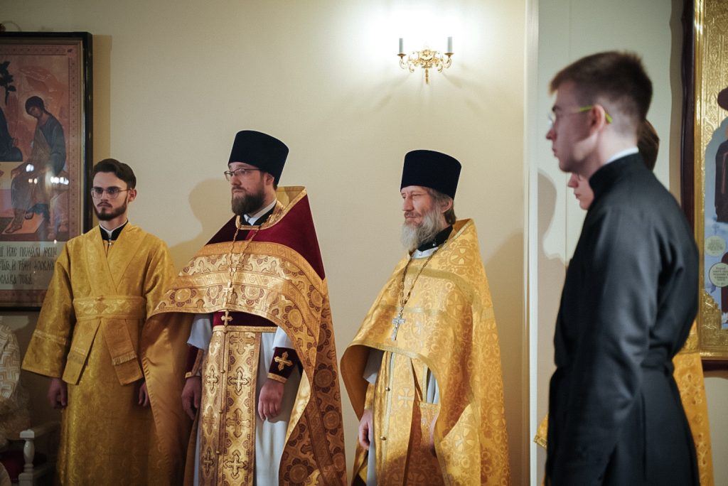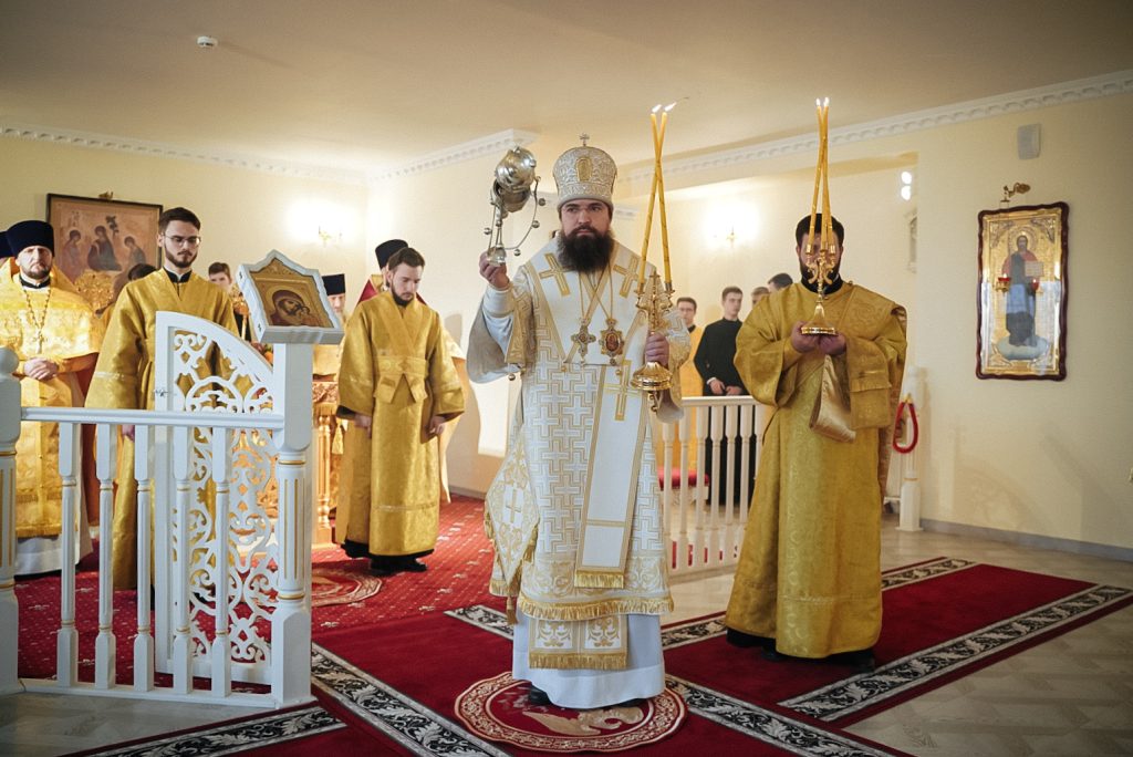 Его Преосвященству сослужили настоятель домового храма, проректор по учебной работе Донской духовной семинарии иерей Олег Малышев, проректор по воспитательной работе Донской духовной семинарии иерей Андрей Миронов и клирики Преполовенского храма.