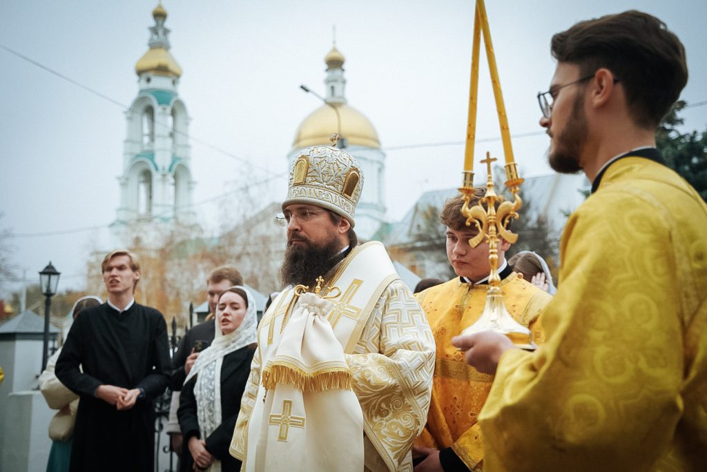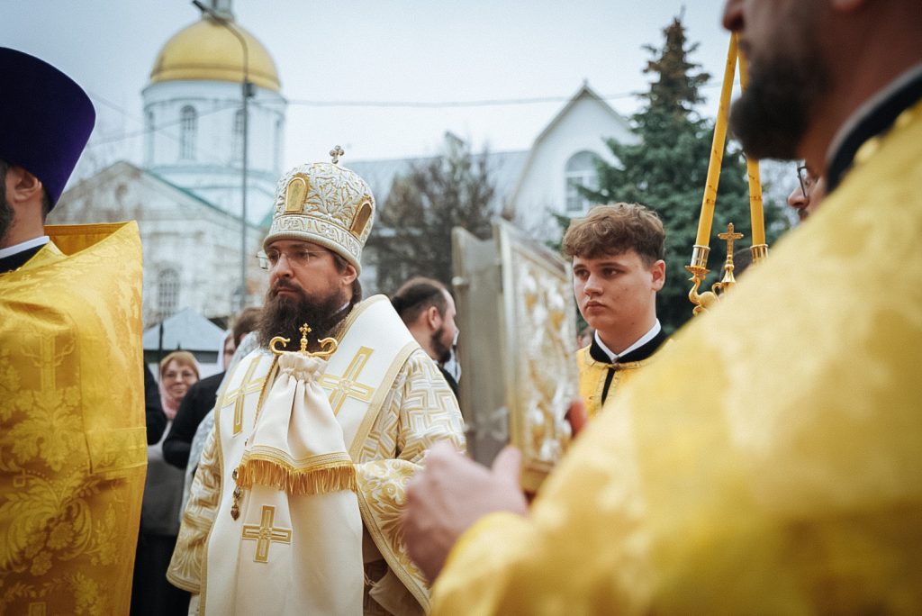 По окончании богослужения вокруг духовной школы был совершен крестный ход и славление святителю Димитрию. Затем, Его Преосвященство обратился к молящимся с архипастырским словом, передав благословение митрополита Ростовского и Новочеркасского Меркурия и поздравления по случаю престольного дня.