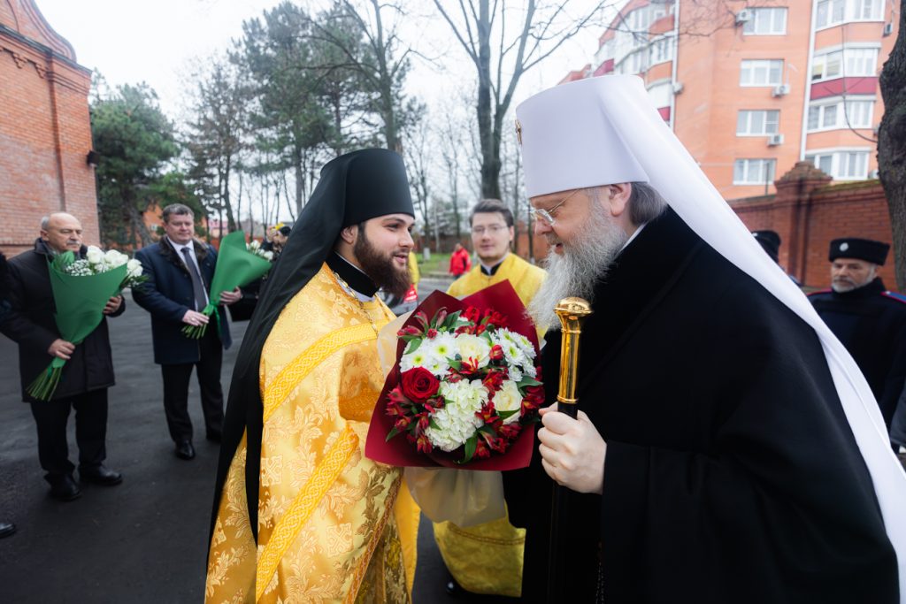 Настоятель храма иеромонах Амвросий (Плахотный) выразил слова благодарности митрополиту Ростовскому и Новочеркасскому Меркурию за совместную молитву в день престольного праздника.