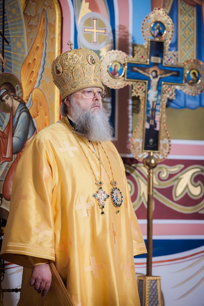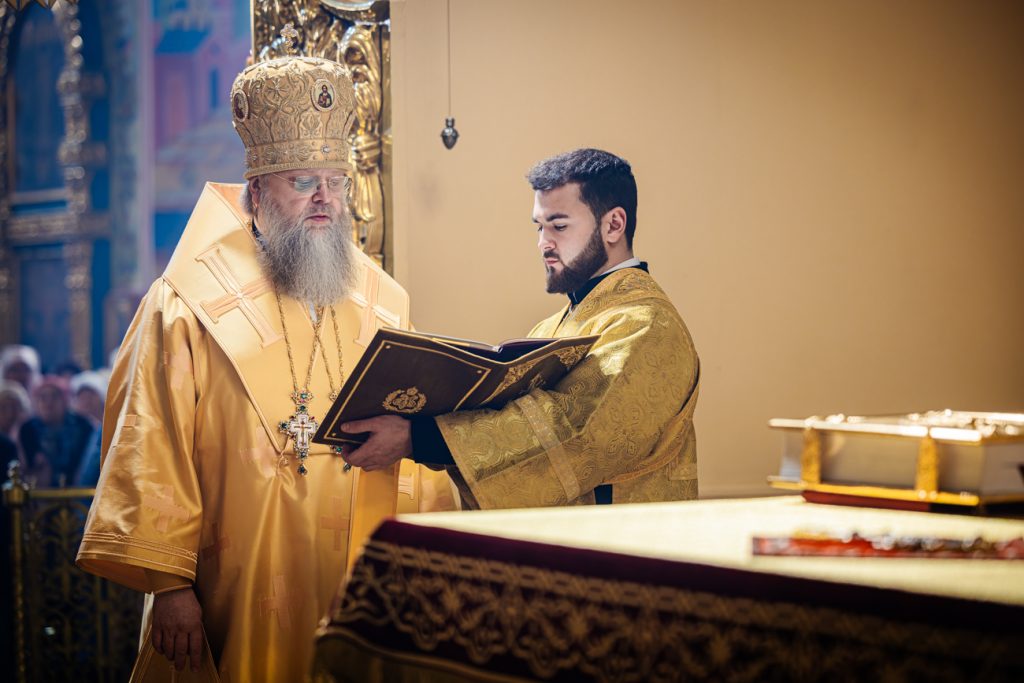 Его Высокопреосвященству сослужили благочинный Азовского городского округа, настоятель храма иеромонах Амвросий (Плахотный), наместник Донского Старочеркасского Ефремовского мужского монастыря игумен Сергий (Коломиц), личный секретарь Главы Донской митрополии иерей Сергий Грибов, клирики епархии.