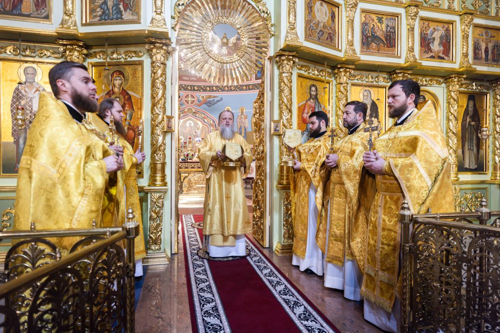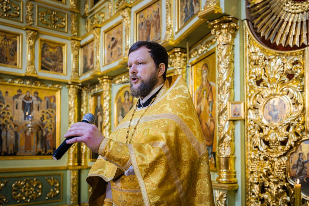 На сугубой ектении была вознесена молитва о Святой Руси. Проповедь перед Святым Причастием произнес клирик храма иерей Матфей Чеботарев.