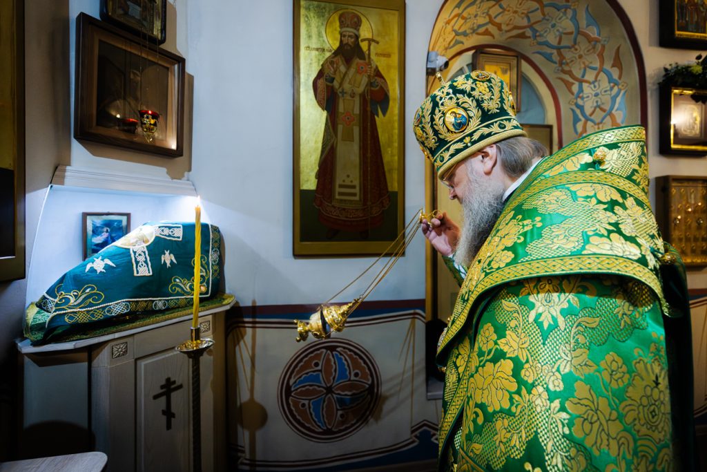 По окончании богослужения митрополит Меркурий совершил славление у раки с мощами святого блаженного Павла Таганрогского.