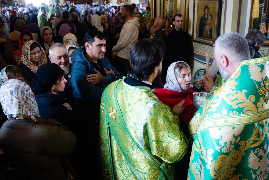 За Литургией молились ректор Донской духовной семинарии протоиерей Тимофей Фетисов, заместитель председателя городской Думы города Таганрога Валерий Селиванов, а также представители казачества, прихожане и паломники.