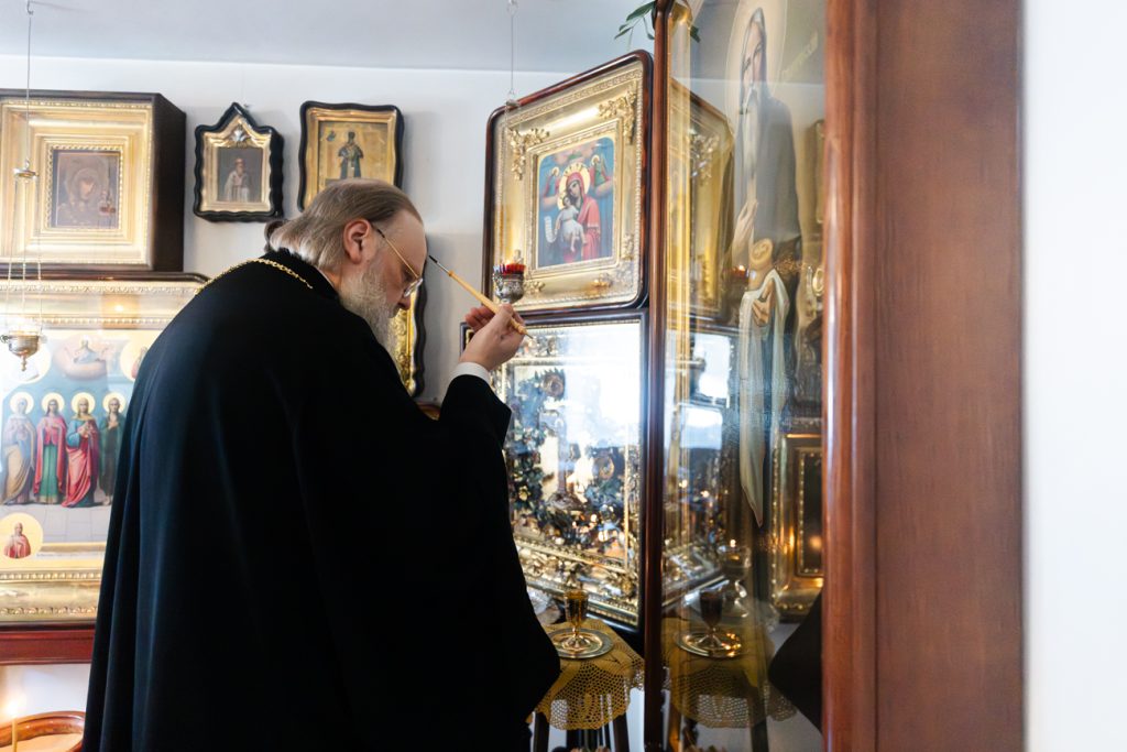 Далее митрополит Меркурий посетил келью праведного Павла Таганрогского, где помолился подвижнику благочестия.
