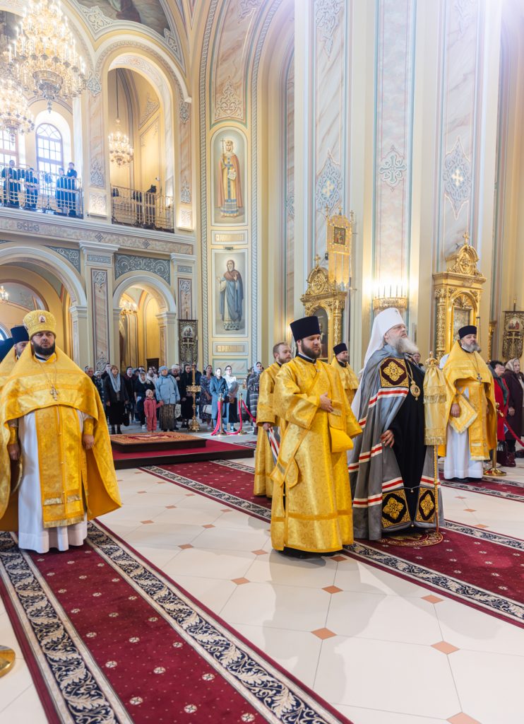 Песнопения богослужения исполнил хор собора под управлением протодиакона Владимира Зубрицкого. Проповедь перед Святым Причастием произнес иерей Александр Слабодин.