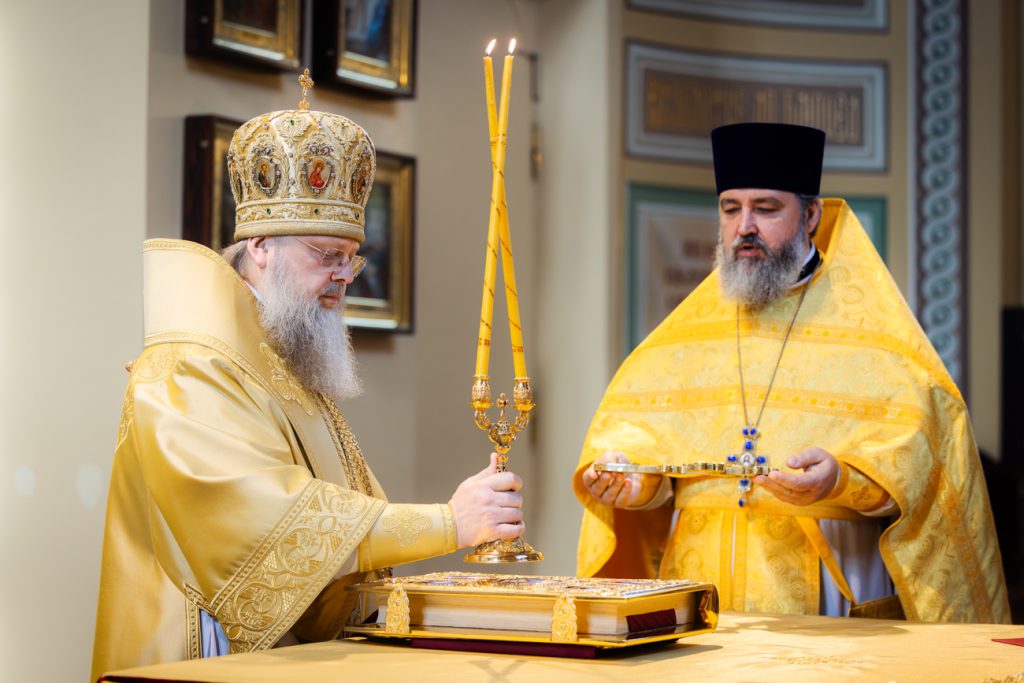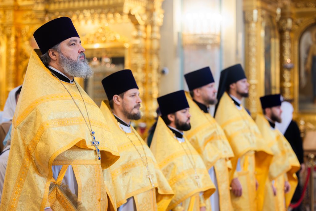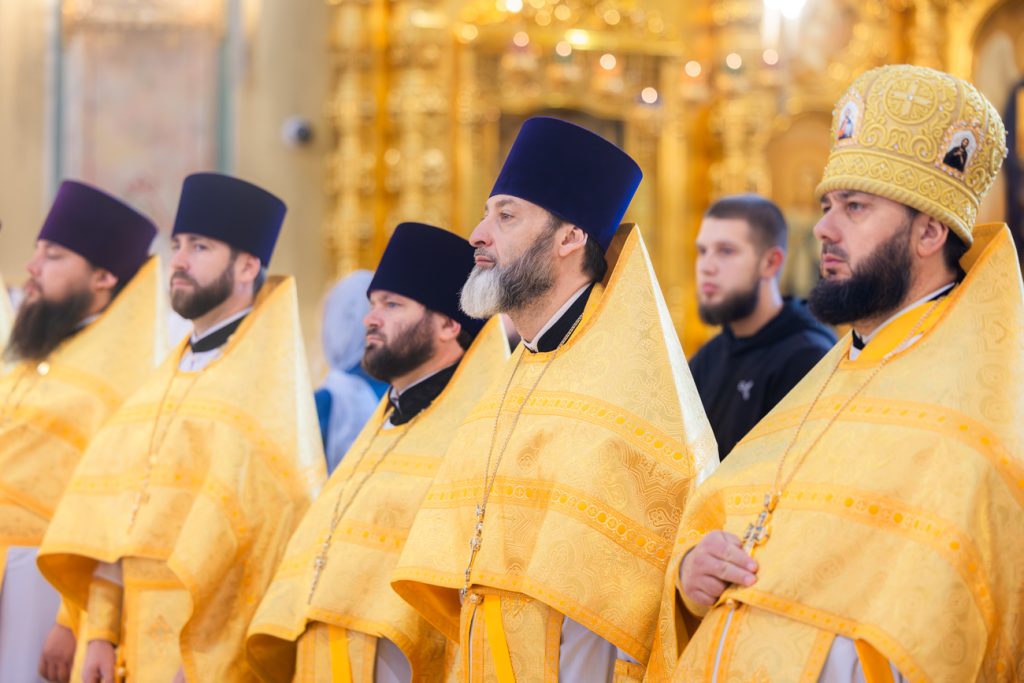 Его Высокопреосвященству сослужили председатель приходского совета собора протоиерей Александр Брянцев, руководитель отдела по взаимодействию с Вооруженными силами и правоохранительными учреждениями протоиерей Валерий Волощук, руководитель Епархиального отдела по взаимоотношениям Церкви с обществом и СМИ, руководитель Епархиального отдела по церковной благотворительности и социальному служению, руководитель Протокола Главы Донской митрополии, руководитель Епархиального отдела по делам молодежи и миссионерскому служению, личный секретарь Главы Донской митрополии, клирики епархии.
