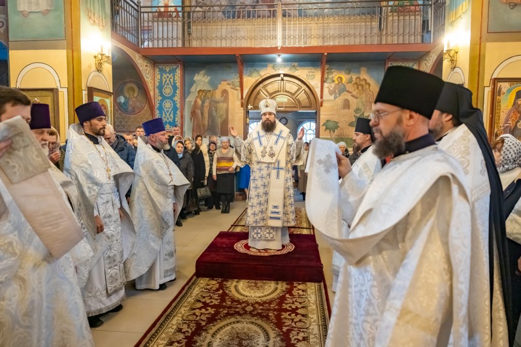 По окончании богослужения Его Преосвященство обратился к молящимся с архипастырским словом и передал благословение митрополита Ростовского и Новочеркасского Меркурия.