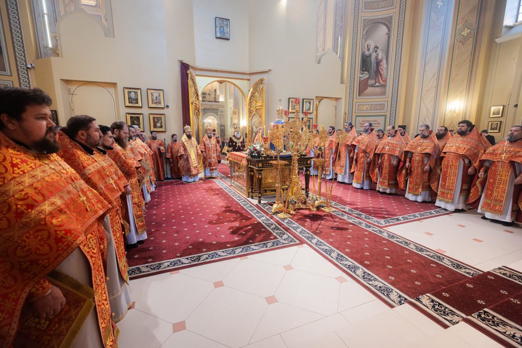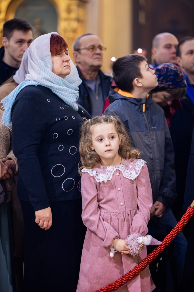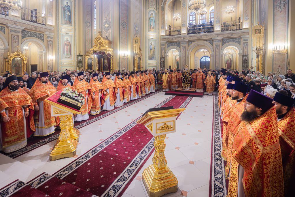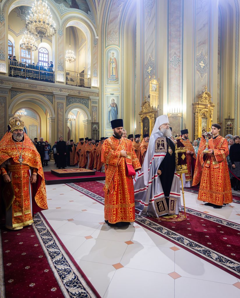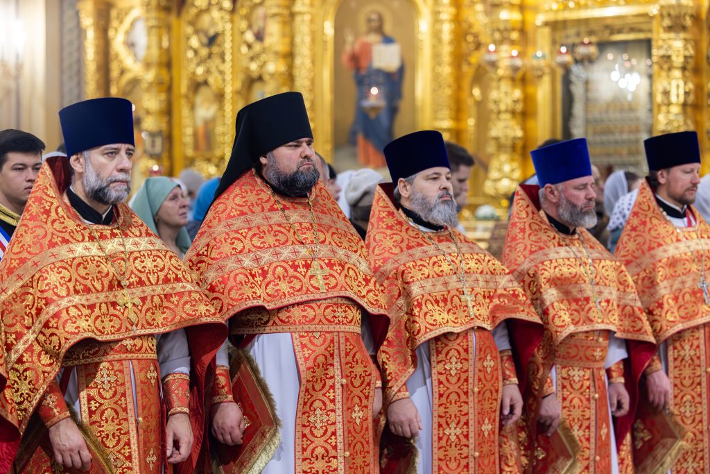 Песнопения богослужения исполнил хор собора под управлением протодиакона Владимира Зубрицкого. Проповедь перед Святым Причастием клирик собора иерей Иоанн Золотавин.
