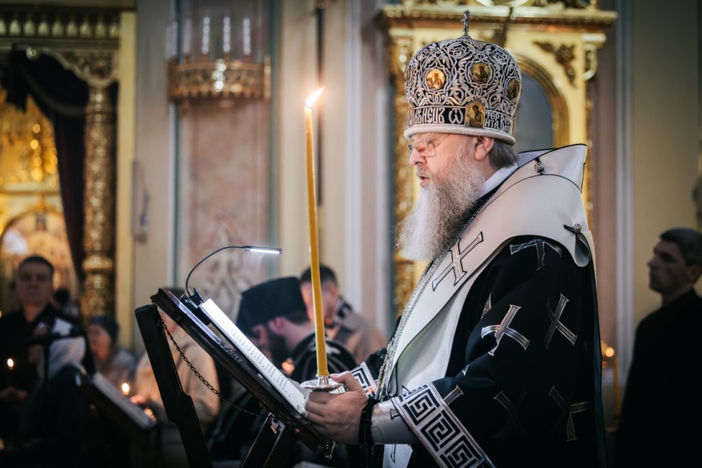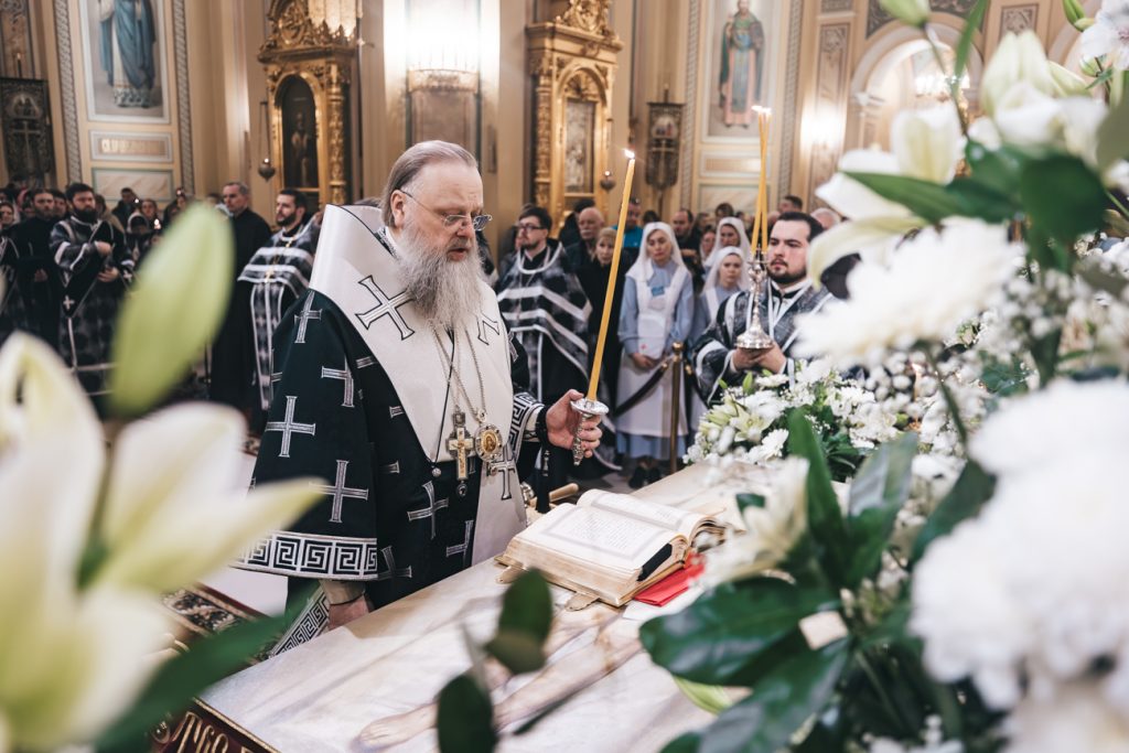 Его Высокопреосвященству сослужили председатель приходского совета собора протоиерей Александр Брянцев, настоятель собора иерей Димитрий Болотаев, духовник епархии протоиерей Николай Урывский и клирики собора.