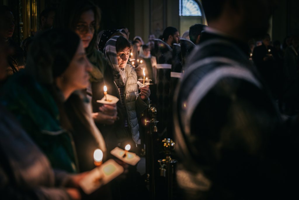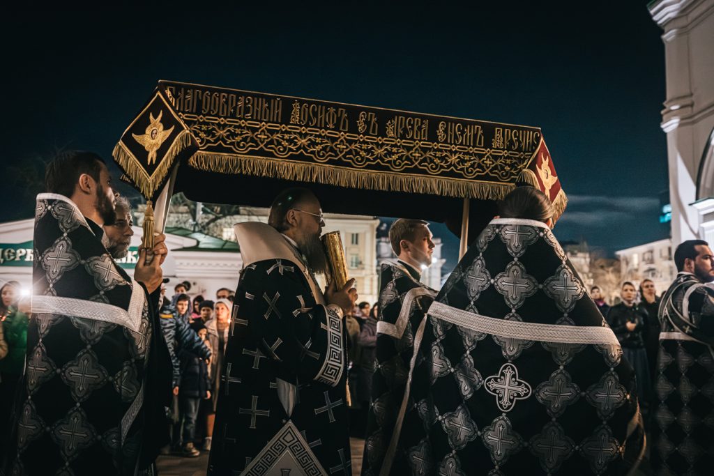 По окончании великого славословия с пением погребального «Святый Боже» был совершен крестный ход с Плащаницей.