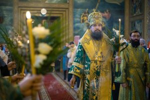 4 апреля 2026 года, в канун праздника Входа Господня в Иерусалим (Вербное воскресенье), викарий Ростовской епархии епископ Таганрогский Артемий совершил всенощное бдение и освящение ваий в храме Преполовения Пятидесятницы при Донской духовной семинарии города Ростова-на-Дону.