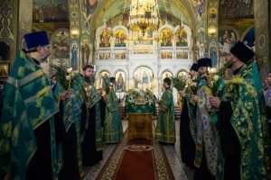 Его Преосвященству сослужили настоятель Преполовенского храма, проректор по воспитательной работе Донской духовной семинарии иерей Андрей Миронов, заведующий отделением магистратуры Донской духовной семинарии протоиерей Григорий Гриднев и клирики храма.