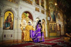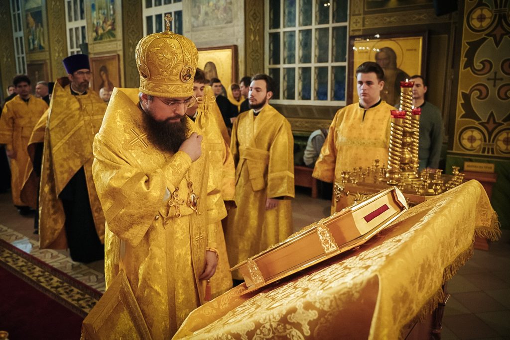 Его Преосвященству сослужили настоятель Преполовенского храма, проректор по воспитательной работе Донской духовной семинарии иерей Андрей Миронов, заведующий отделением магистратуры Донской духовной семинарии протоиерей Григорий Гриднев и клирики храма.