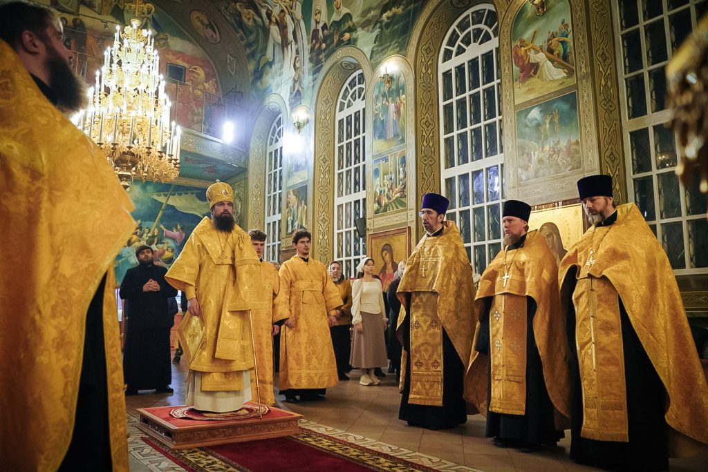 29 ноября 2025 года, в канун Недели 25-й по Пятидесятнице, преподобного Никона, игумена Радонежского, ученика преподобного Сергия, викарий Ростовской епархии епископ Таганрогский Артемий совершил всенощное бдение в храме Преполовения Пятидесятницы при Донской духовной семинарии города Ростова-на-Дону.