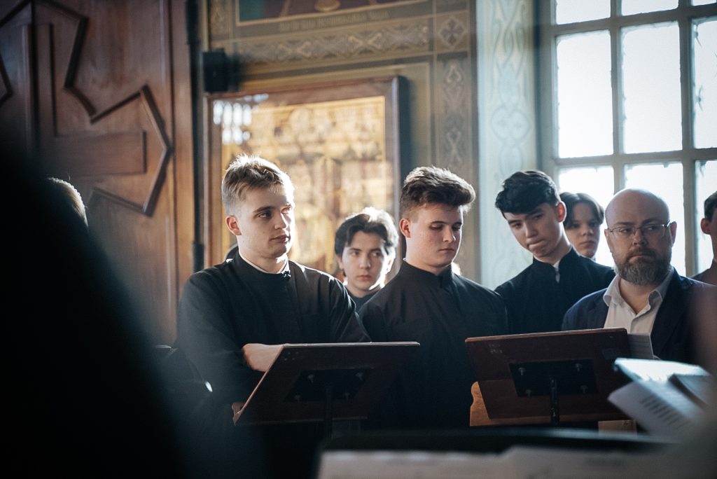 Песнопения богослужения исполнил смешанный хор духовной школы под управлением иеромонаха Аверкия (Шапошникова).