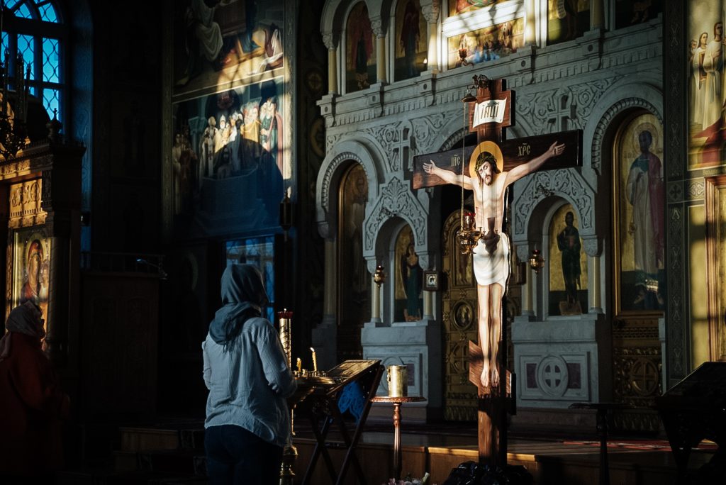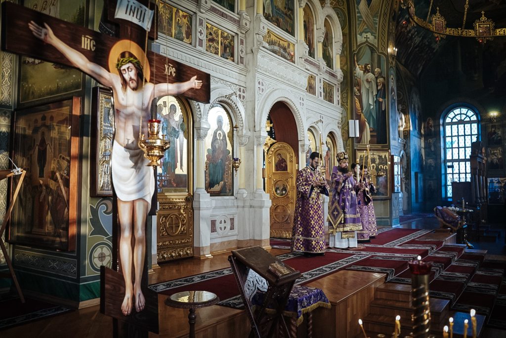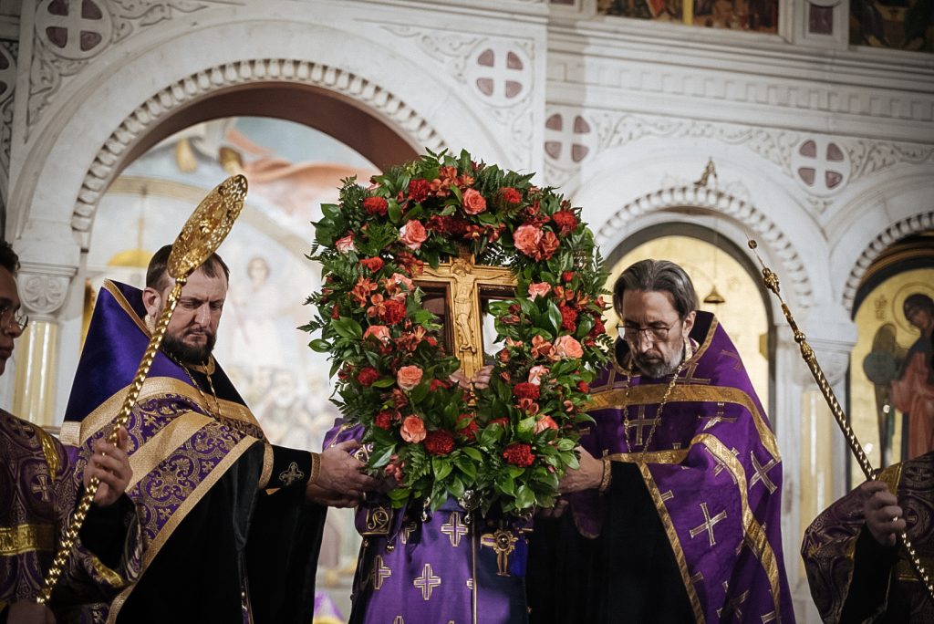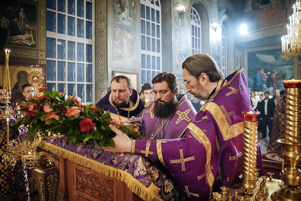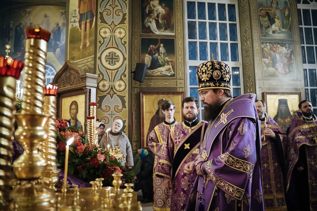 После великого славословия епископ Таганрогский Артемий совершил чин выноса Креста Господня, затем было совершено поклонение Кресту.