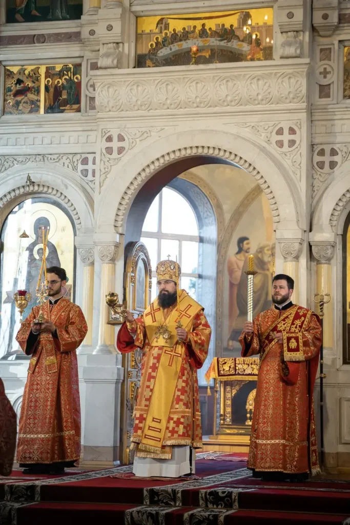 Его Преосвященству сослужили настоятель Преполовенского храма, проректор по воспитательной работе Донской духовной семинарии иерей Андрей Миронов, заведующий отделением магистратуры Донской духовной семинарии протоиерей Григорий Гриднев и клирики храма.