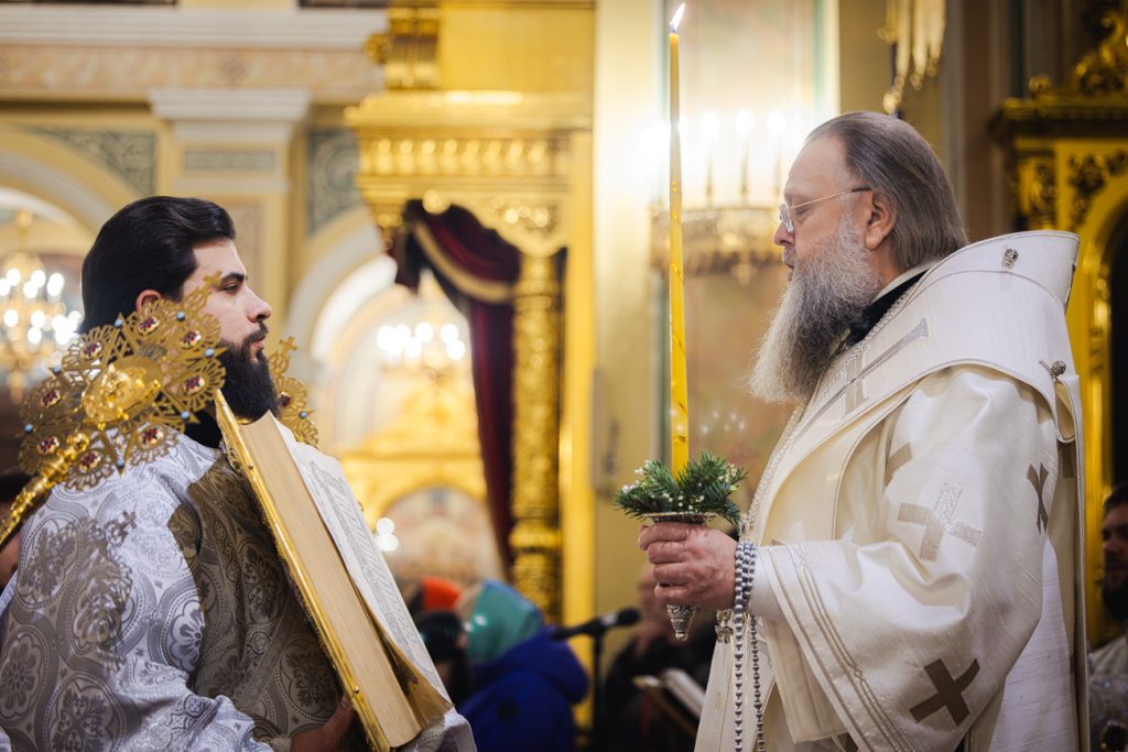 Его Высокопреосвященству сослужили настоятель собора иерей Димитрий Болотаев, духовник епархии протоиерей Николай Урывский, личный секретарь Главы Донской митрополии иерей Сергий Грибов, клирики собора.